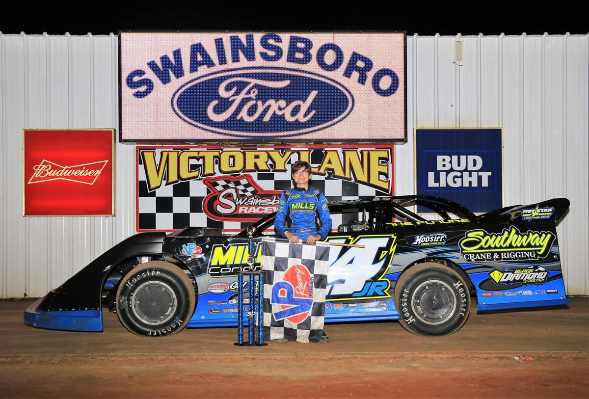 For the second-straight week Trey Mills raced to a feature win in his Southway Crane & Rigging No. 14 Mills Concrete / Integra Racing Shocks / Black Diamond Race Car Crate Late Model.