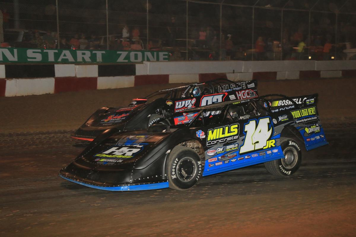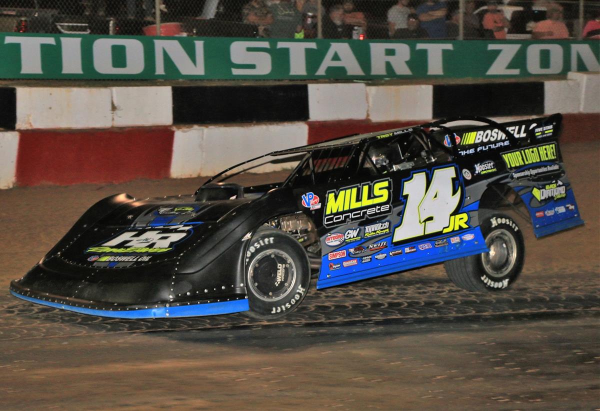 With 34 Late Models in the pits, Mills timed in fifth-fastest in his group before piloting his way to a runner-up finish in his heat. For the $10,000-to-win main event, Mills challenged the leaders and led laps 17-22 before fading late in the feature to finish fifth.