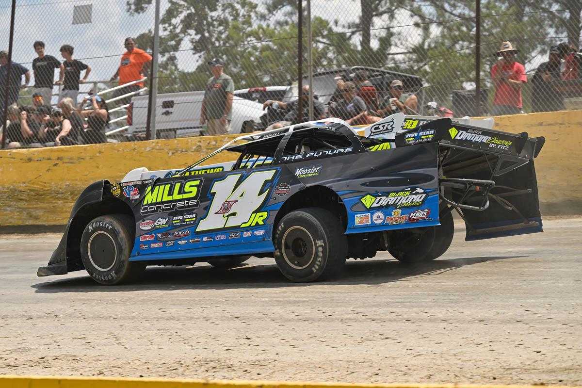 With a strong 42-car field on hand, Mills qualified ninth-quickest and charged from fifth-to-second in his heat race before a heavy storm pushed the remainder of the event to Sunday afternoon. Starting sixth in the 50-lap main event, Trey faded back to 17th.