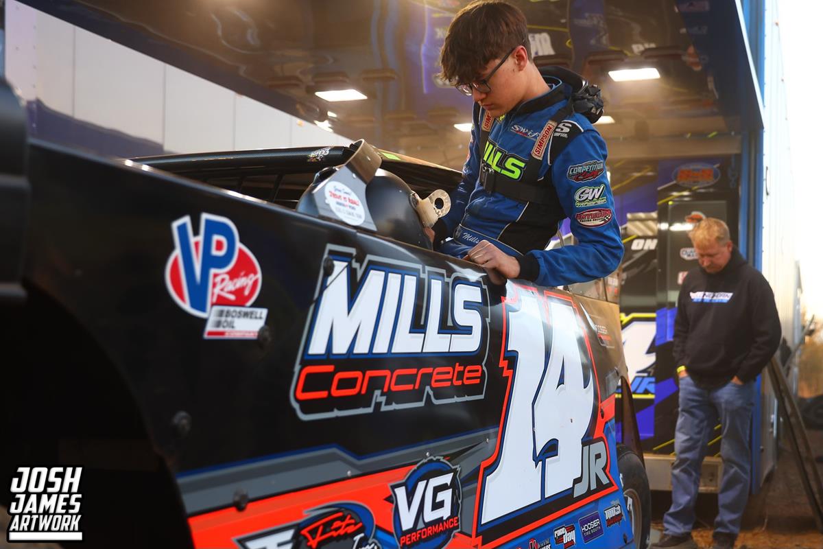 With a stacked 44-car field on hand, Mills laid down the fourth-quickest lap in his qualifying group before outdueling Josh Putnam for a heat race victory. Trey redrew the outside pole in the redraw and took the lead when the green flag dropped. Leading the first 30 circuits of the 50-lap feature, Mills got passed by Ricky Weiss but still hung on for a fourth-place finish just off the podium.